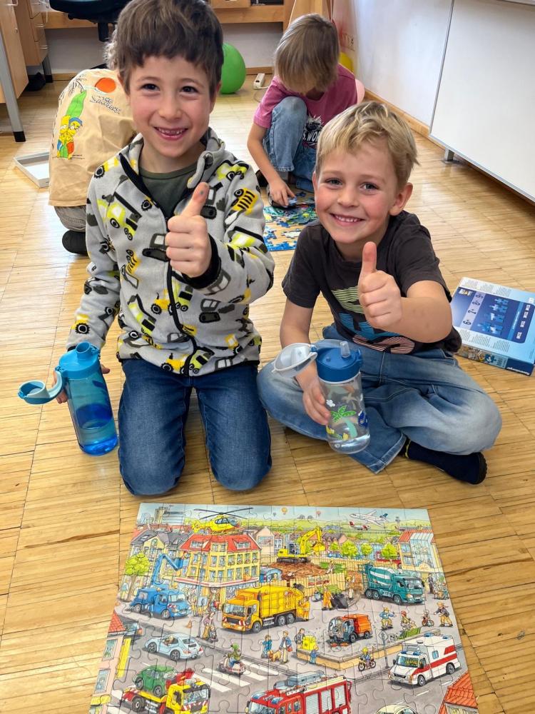 Zur Feier des Tages drehte sich natürlich alles um die Zahl 100. Mit viel Kreativität gestalteten wir bunte 100er-Brillen, bauten Kunstwerke aus 100 Gegenständen, lösten knifflige 100-Teile-Puzzles, lasen, rechneten und stempelten.