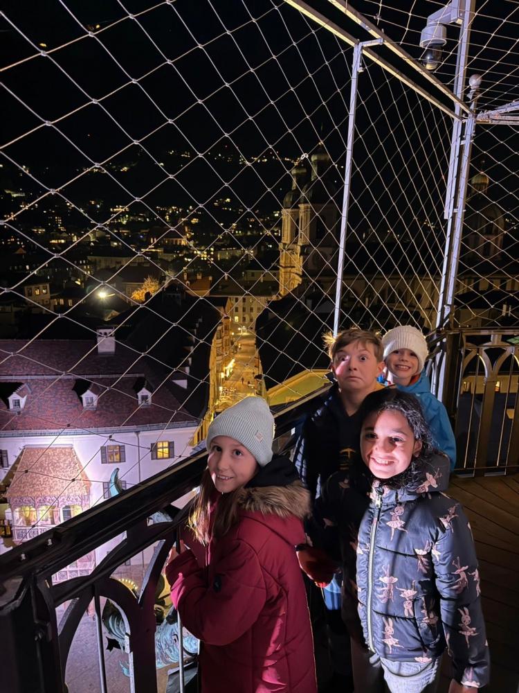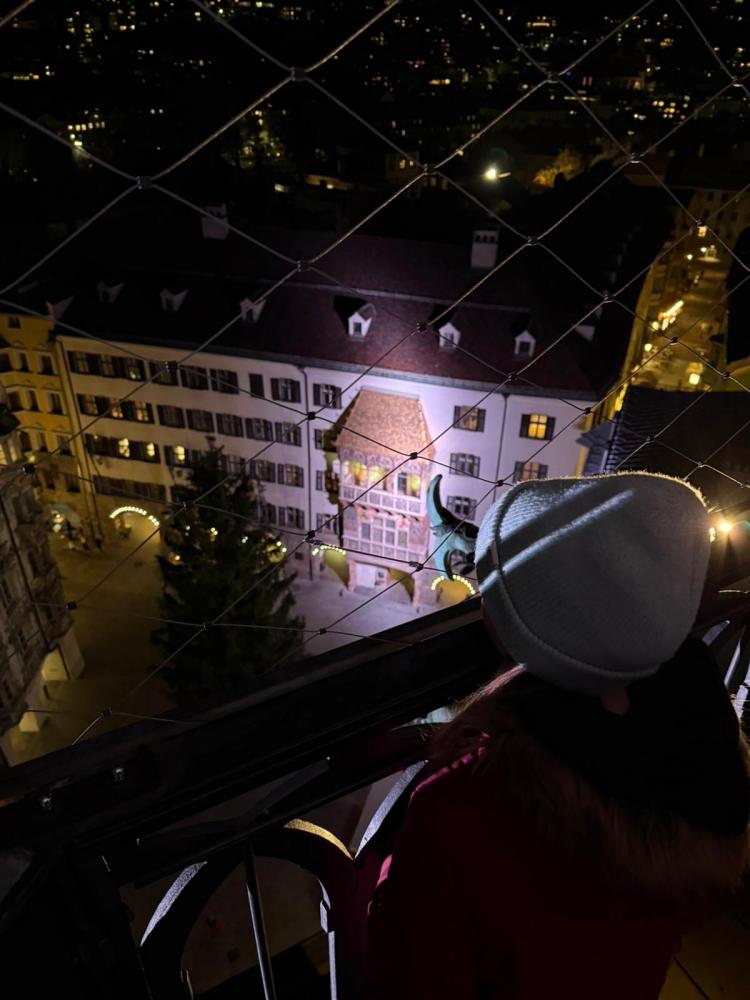 Zum Abschluss durften wir ganz exklusiv im Dunkeln den Stadtturm besteigen – hoch über den Dächern Innsbrucks genossen wir die beeindruckende Aussicht.