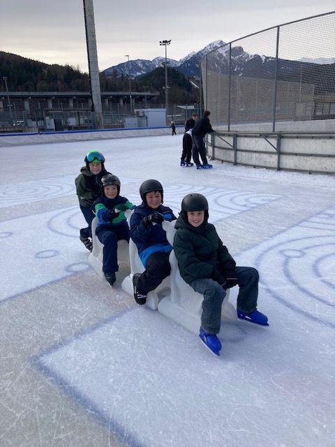 Am 22.12.2025, zwei Tage vor dem großen Fest, hat sich die 4a Klasse auf den Weg zum Außeneisring in Innsbruck gemacht. Die Schlittschuhe wurden geschnürt, dann ging es auch schon aufs Eis. Die Kinder drehten viele Runden und haben sich auch gegenseitig unterstützt. Es dauerte nicht lange, da wurden nicht einmal mehr die Eisbären zum Festhalten benötigt! Schnell verging die Zeit und die 4a Klasse musste sich wieder auf den Rückweg machen. Es hat viel Spaß gemacht und die Kinder haben sehr viel Teamgeist bewiesen!
