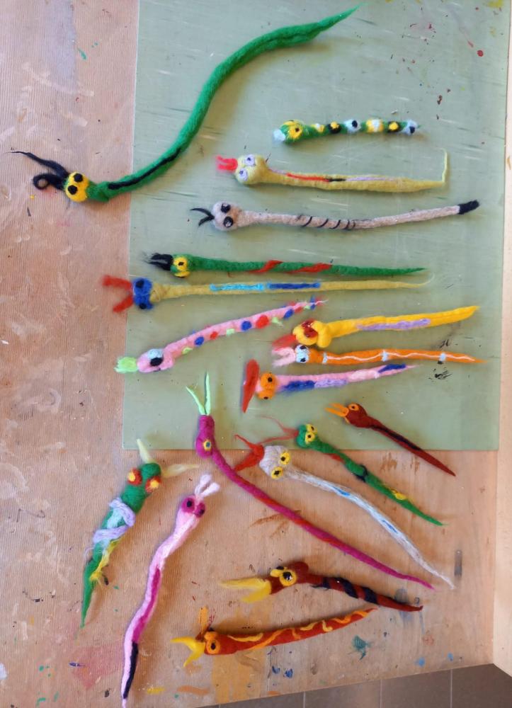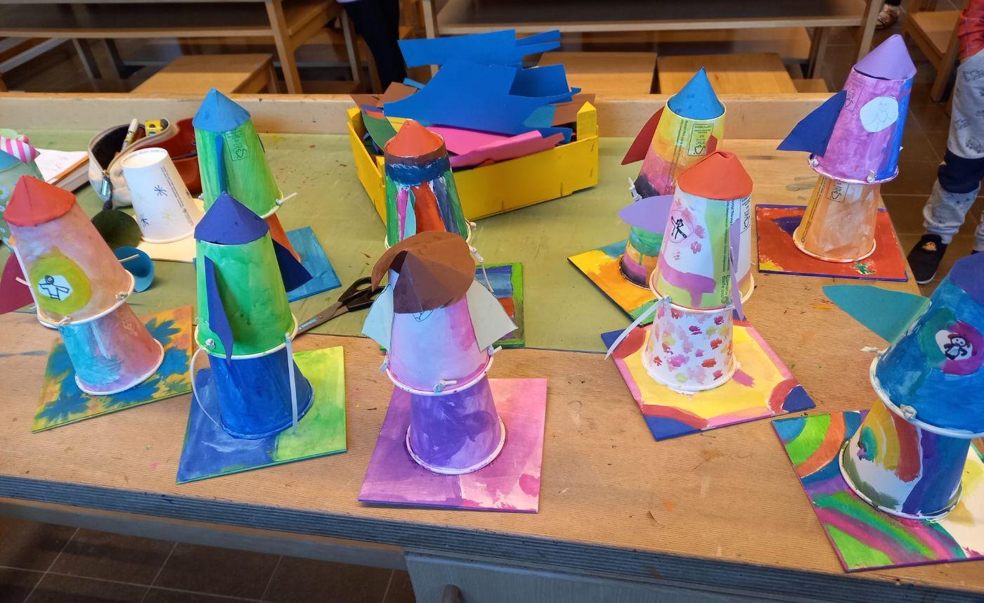 Coole Projekte entstanden in den letzten Wochen im Werkraum: Die 1. Klassen fertigten und testeten Raketen, die 2a sägte und bemalte bunte Zauberstäbe, die 3. Klassen kreierten Möbel für ihre Baumhäuser bzw. malten und sägten fleißig für ihr Fallschirmprojekt. Die 4. Klassen gestalteten kreative, mit gehäkelten Akzenten geschmückte Faschingsfiguren. Außerdem filzten sie schöne bunte Schlangen.