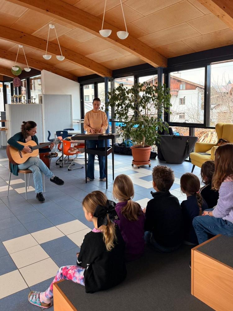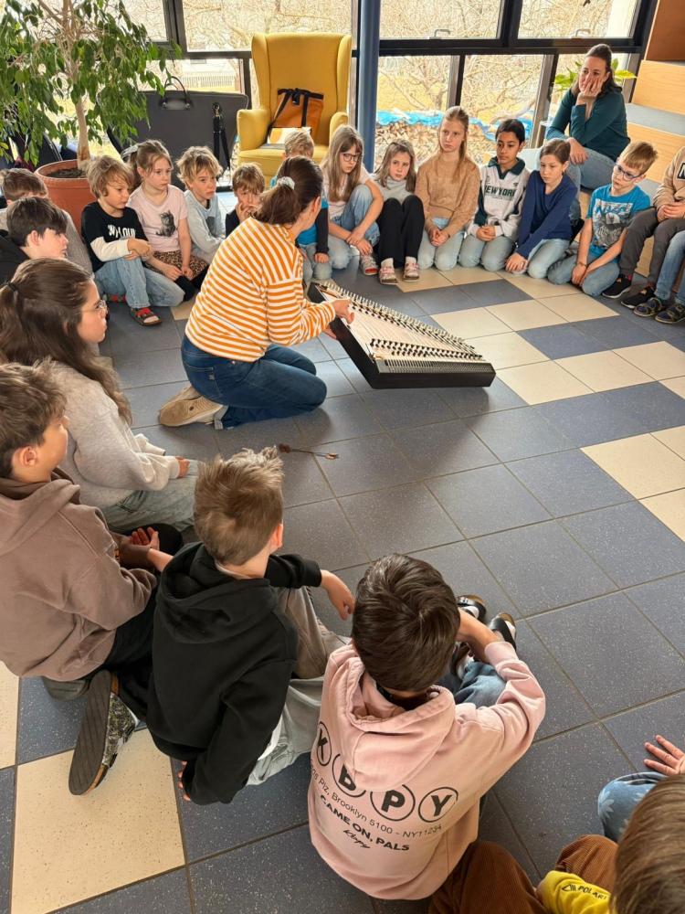 Unter diesem Motto durften wir, die Kinder der 1a und 4b, am Montag, dem 2. MĂ€rz, zwei Musikantinnen der Musikgruppe âDie Vielsaitigenâ an unserer Schule begrĂŒĂen.